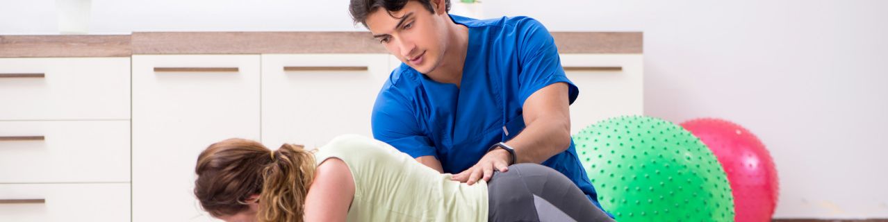 うつ伏せの女性の腰に男性が手を置く